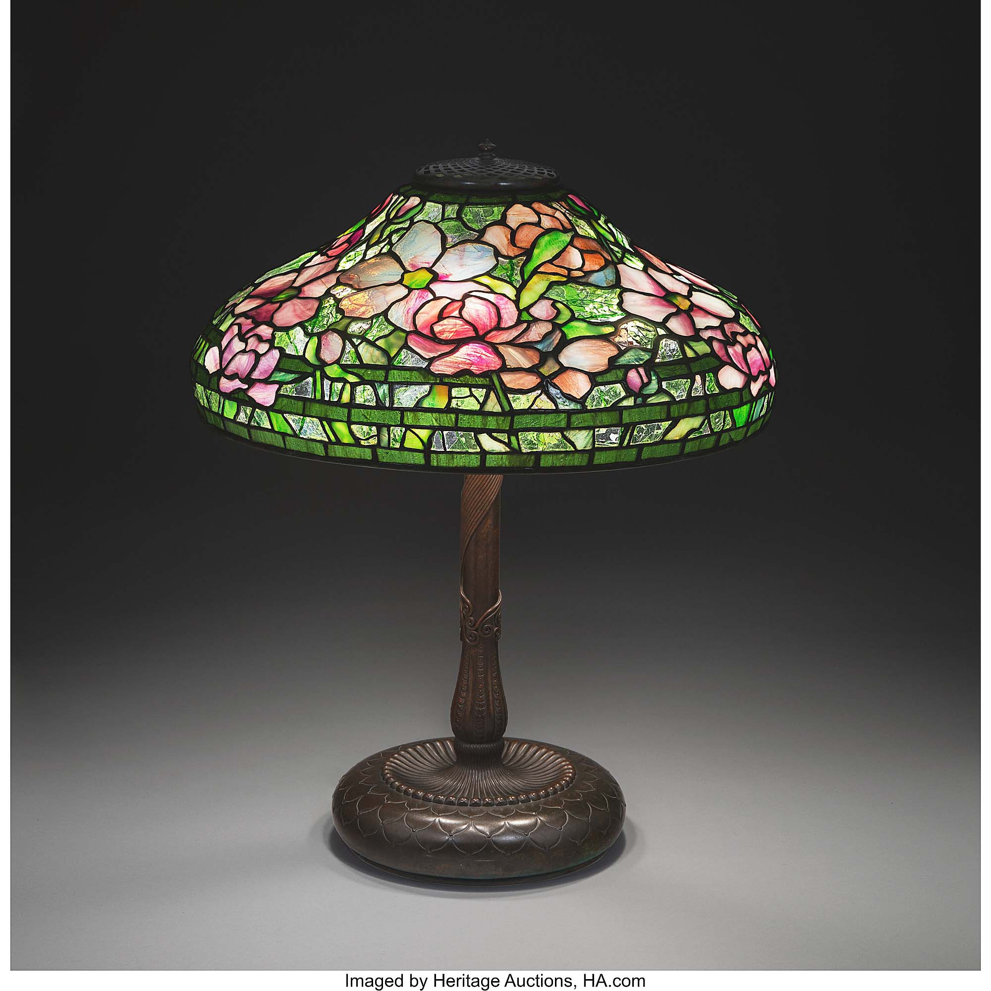 Earning the sale’s top price was this circa 1905 Peony table lamp by Tiffany Studios, 23 inches tall, 18¼ inches in diameter; it found a buyer online for $87,500.
