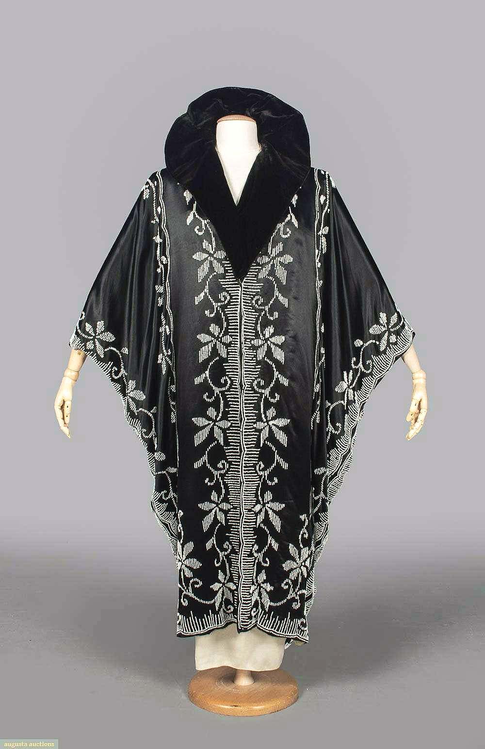 Hand stitched with seed pearls and crowned by a velvet collar, this Dorat silk satin cocoon coat had a shattered lining but still fetched $2,875 ($500/800).
