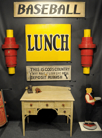 “The preview party was a big success,” stated council show manager David Bernard, “the crowd was up significantly and there was lots of buying going on all around the floor.” With a raw bar to the right of your booth, oysters being shucked at a frenzied pace in an adjacent space and a libations bar directly in front of it, one might think that the distractions would be sufficient to impact activities in a booth filled with antiques. South Hadley, Mass., dealer Victor Weinblatt found the exact opposite to be true. The dealer finally resorted to stacking the whimsical signs, for which he is so well known, in corners with sold tags protruding from all sorts of angles. Weinblatt reported an excellent opening with a plethora of signage sold.