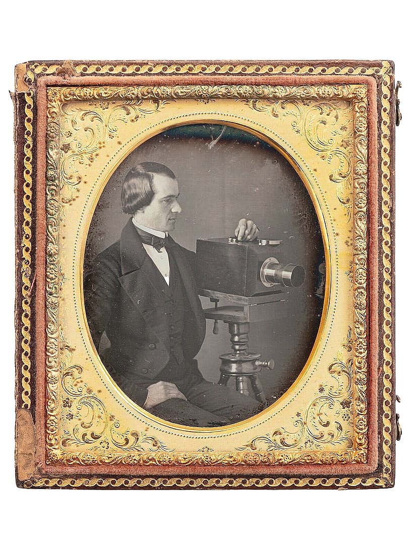 Early photography continued to be popular with bidders, as a sixth-plate daguerreotype of a photographer sold for $16,800. Posed with an American-made chamfered box camera seated atop a wooden tripod, the photo retained its original seals and was housed in a half-pressed paper case. An 1860 ambrotype brooch of Abraham Lincoln made by George Clark, Jr, for Lincoln’s presidential campaign also made noise, earning $10,800.