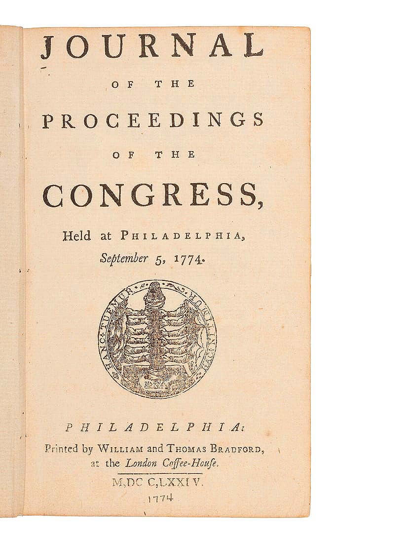 This first issue of the Journal of the Proceedings of Congress documented the proceedings of the first Continental Congress, held in Philadelphia on September 5, 1774. Potentially belonging to former chaplain of the House of Representatives Daniel Waldo, the copy flipped to $13,200 ($10/15,000).