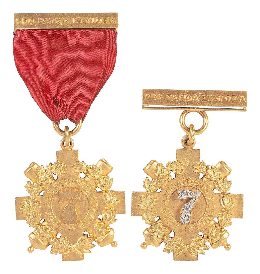 Also concerning the Civil War were a lot of two Tiffany & Company service medals presented to George Moore Smith of the Seventh New York State militia. Both medals were 22K gold, signed “Tiffany & Co.” and patented “Mar. 3 1885.” With provenance to the estate of David O’Reilly of Old Bridge, N.J., the lot was pinned down for $12,000.