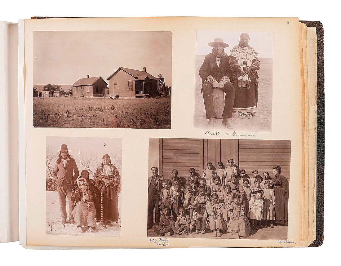 Another album, this example filled with photographs of the Pine Ridge Reservation (South Dakota) and its surroundings, more than doubled its $7,000 high estimate to realize $16,800. Most photographs in the lot were uncredited; however, some were accompanied by a note attributing the images to “Mr Garrett, teaching at No. 4 Day School.”