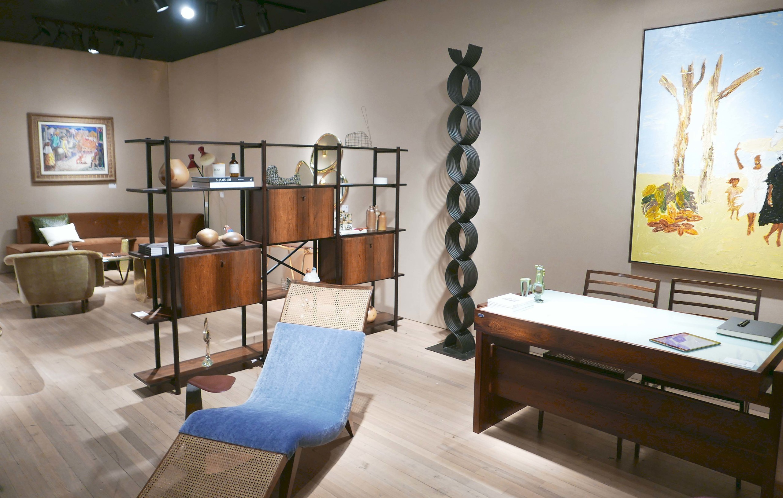 Francis Milord shared that his gallery, Milord Antiques, offered “an eclectic selection of timeless classics — mostly American, French and Italian vintage masterworks.” American brutalist works from the 1960s were a dominating trend in the booth, supported by several pieces of furniture by Paul Evans and Philip and Kelvin Laverne. He added that his French Art Deco pieces from the 1940s helped to balance out the selection.
