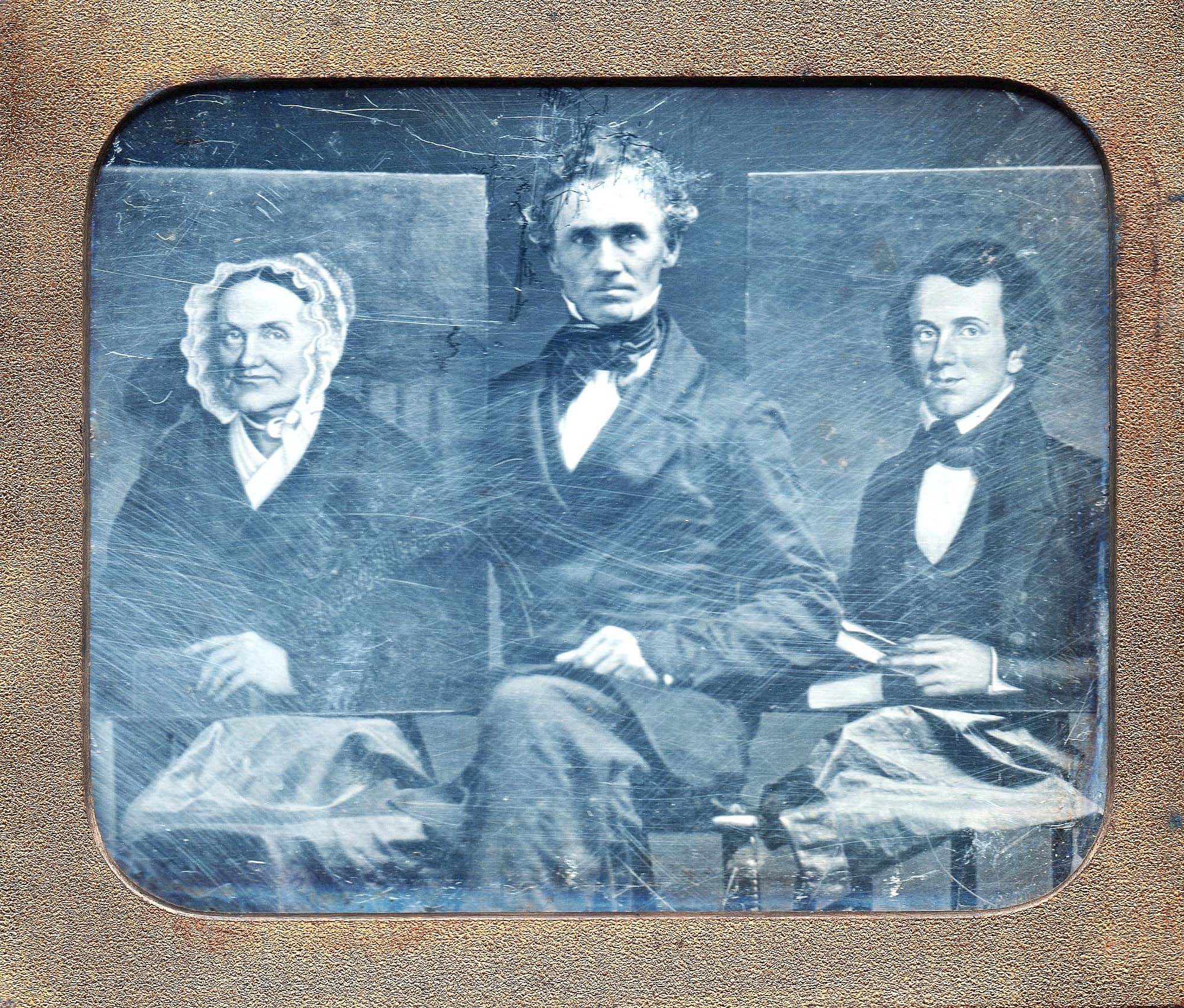 Featuring a man seated with two portrait paintings, this sixth plate daguerreotype, American, circa 1845, 3¾ by 3¼ inches cased, brought $1,890 ($250/500).
