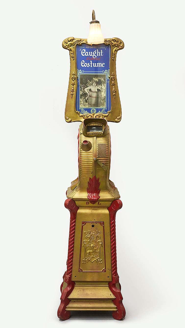 Despite the much different attitude surrounding it, a fully functioning mutoscope viewer from circa 1900 also charmed bidders. Titled “Caught Without Costume,” for just one penny, this mutoscope would flip through a more suggestive reel showing photos in motion at the turn of a crank. Though it was sold without a key and light, the spectacle did include an additional flipbook, and bidders took the device to $5,200.