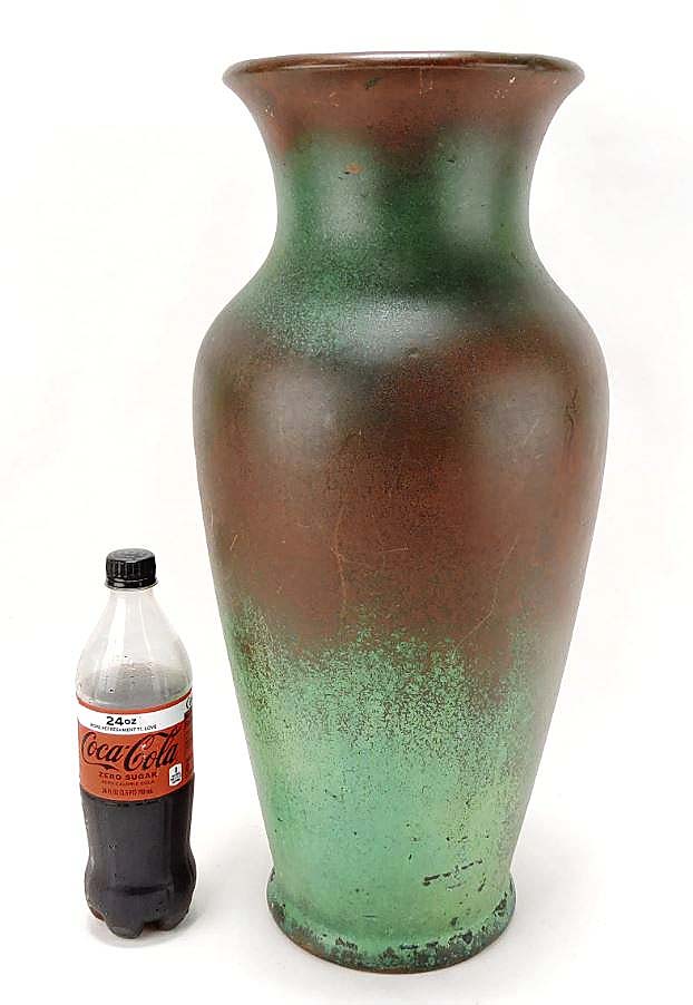 The highest-selling of a half-dozen lots of copper-clad pottery by Clewell was this pottery floor vase that led the Pottery auction with a $2,200 result ($1,5/2,000).