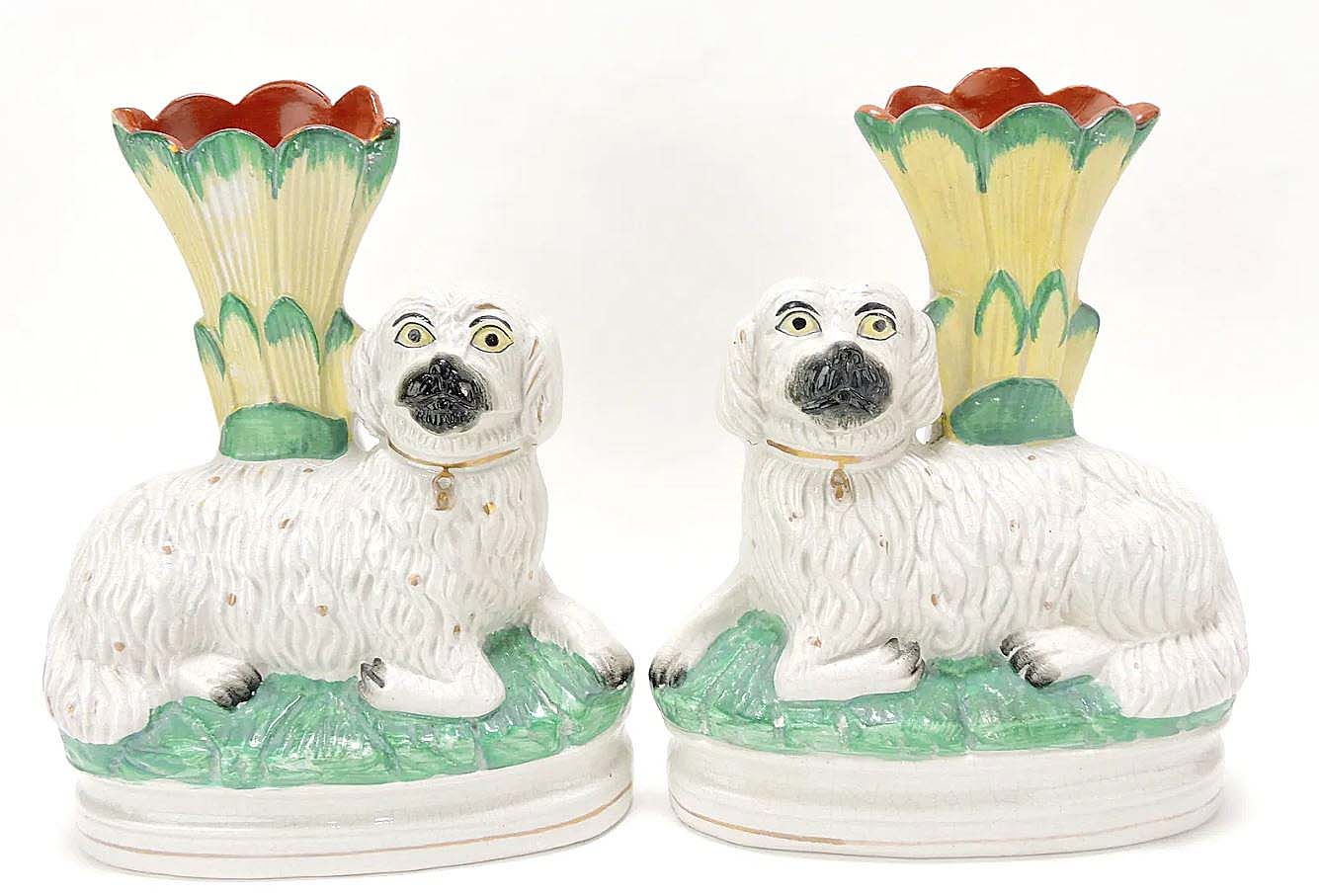 Topping the Staffordshire sale with a $2,750 return was this pair of 10½-inch-tall spill vases with dog bases ($200/300).