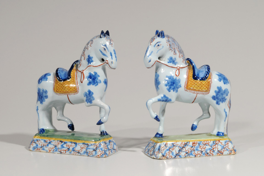 Pair of polychrome figures of prancing horses. Delft, circa 1750-1770. Prov.: Anton Philips Collection.