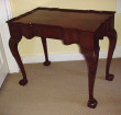 This truly elegant arm chair is a reproduction of a Philadelphia Queen Anne chair, circa 1740-1750. The elaborate carving demonstrates the height of the cabinetmaker's art. It features sweeping arms, an elegant splat, shell carved crest rail with volutes and coordinating shell carved cabriole legs resting on trifet feet.