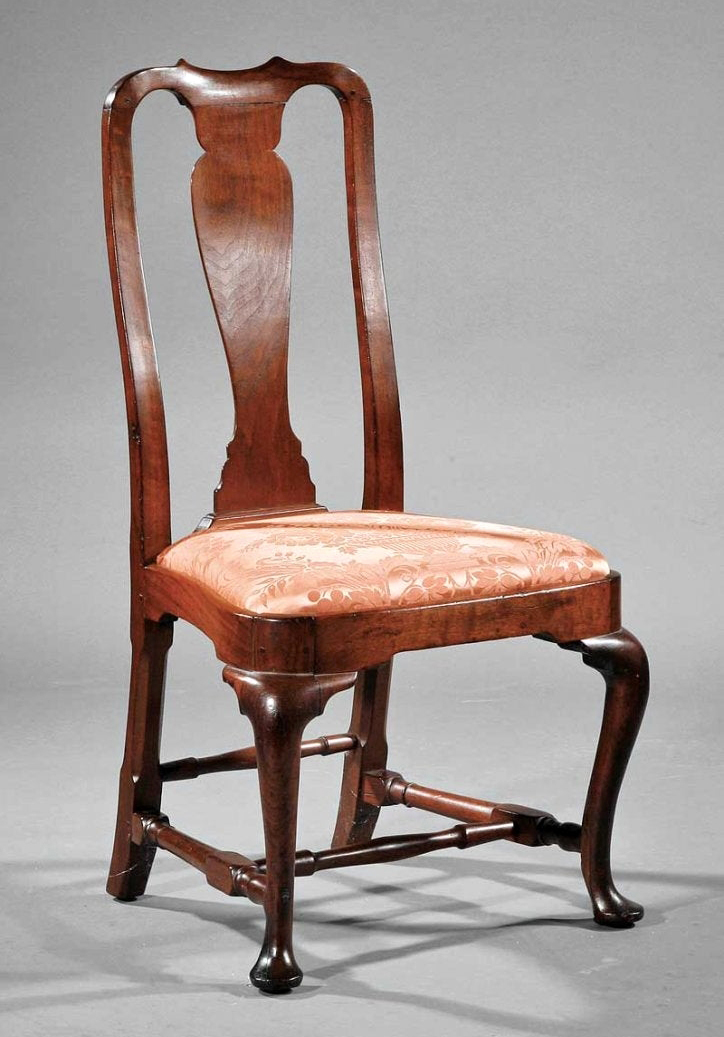 Queen Anne carved walnut side chair, New England, mid-Eighteenth Century, measuring 39½ inches high by 23½ inches wide by 17½ inches deep. Provenance: Marguerite Riordan, Stonington, Conn., 1982. Roberto Freitas Stonington, Conn. 860-535-1797 info@robertofreitas.com http://www.robertofreitas.com/