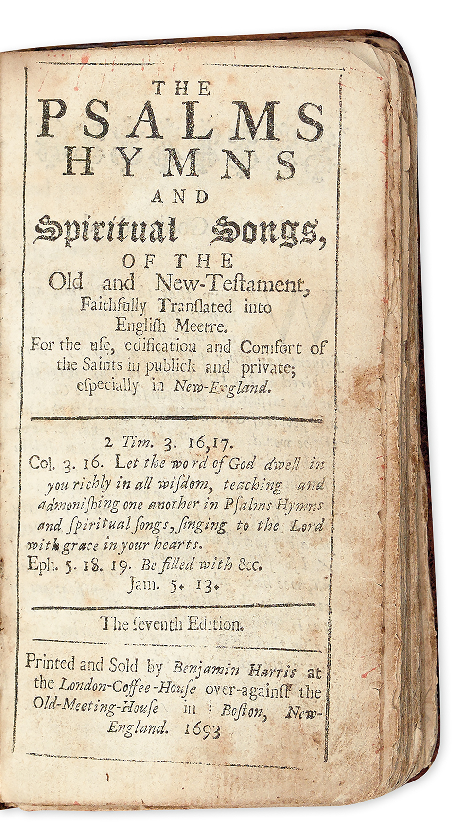 NEW YORK CITY — A previously unknown seventh edition of the Bay Psalm Book, published in Boston, 1693, with provenance tied to Salem witch trial judge Jonathan Corwin, as well as descendants of John Proctor, attained $221,000 from a dealer at Swann Galleries’s February 4 printed manuscript auction.