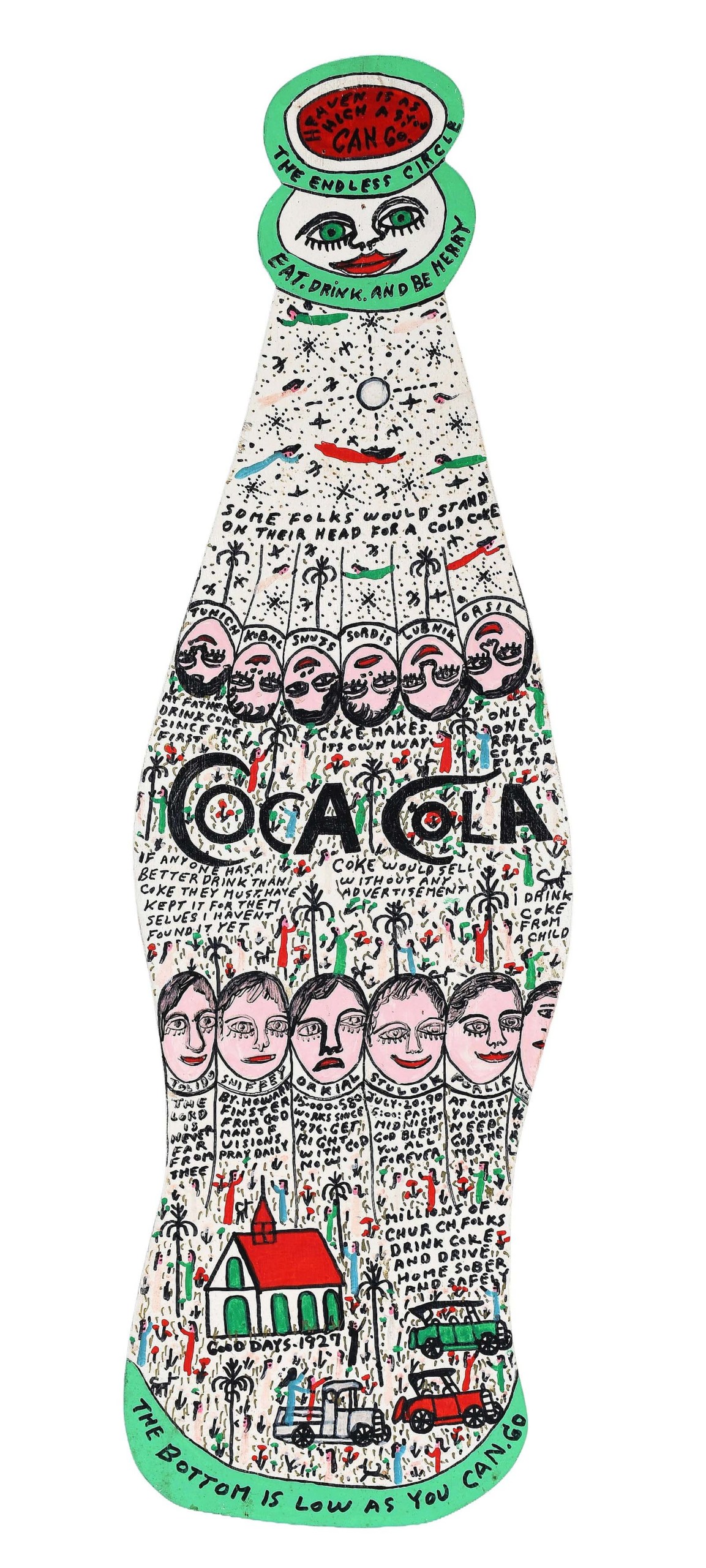 Popping its top for $3,875 was Howard Finster’s “Coca Bottle, #15580,” paint and marker on cutout board, 34 by 10½ inches ($1/3,000).