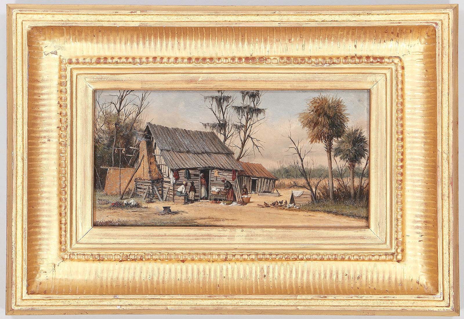 Four paintings by American artist William Aiken Walker earned top prices, led by “Cabin Scene,” an oil on board signed to the lower left and depicting an African American sharecropping family doing tasks outside of and around their cabin. The work earned $7,808, eclipsing its $3/5,000 estimate. Another work titled “Cabin Scene,” this one an oil on academy board, made $7,250, while a pair of full-body portraits of an African American man and woman sold together for $5,250.