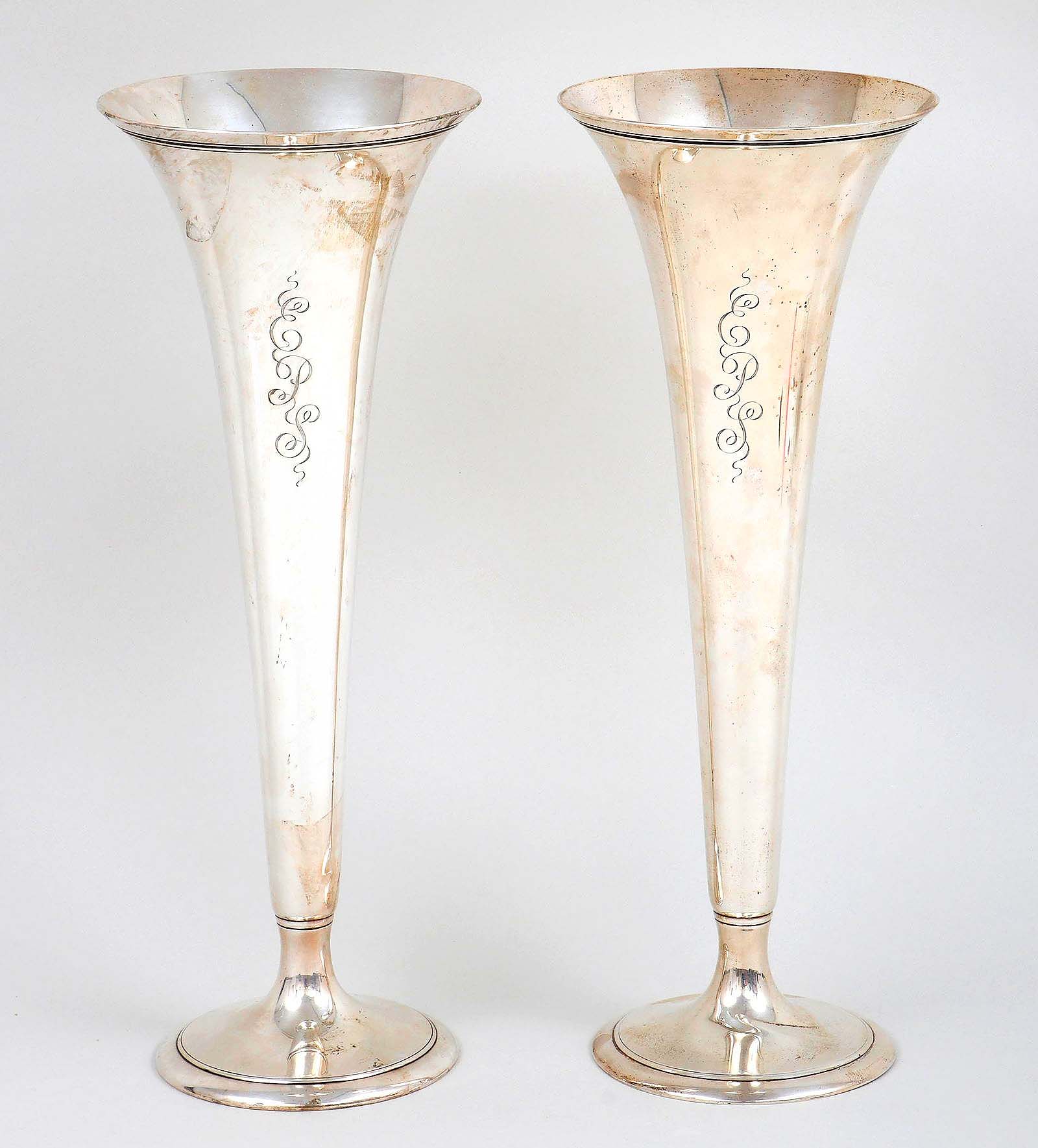 A pair of sterling silver trumpet vases by Tiffany & Company made circa 1907-47 were the front runners for the silver category, earning a polished $5,002 against a $1/2,000 estimate. The body of each 17-inch-tall vase was engraved with script monograms and marked on its underside. Fewer than 10 additional Tiffany lots were offered, but every one sold, ranging in price from $688 for a set of four Makers sterling silver columnar form candlesticks, to $2,000 for a four-piece coffee set in a scrolled silver pattern which included a coffee pot, a covered sugar pot, a creamer and an oval tray.