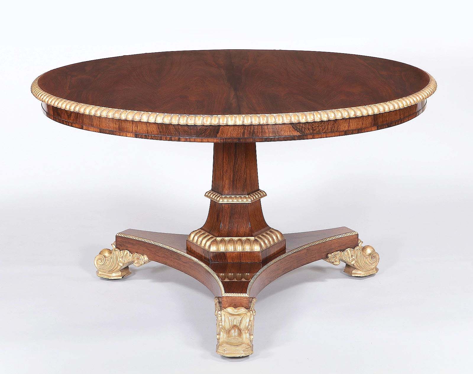 The second highest price of the sale went to a pair of chinoiserie side chairs with provenance to the Phipps family of Long Island, N.Y. The chairs’ frames were done in red lacquer and had gilt-painted chinoiserie scenes; each crest rail was also carved, pierced and topped with a central shell motif. They surpassed their estimate of $250/450 by more than 21 times, realizing $9,516. Furniture from the Phipps family agreed with bidders, as the next highest price from the category — $4,758 — was also awarded to a piece consigned from their collection: a Regency-era round tilt-top rosewood breakfast table by the Gillows of Lancaster.