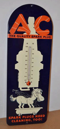 Matthews Auction has reported the theft of an AC Spark Plug sign that was stolen during shipping. The sign features Sparky the Donkey graphics, a tin thermometer and was listed as new in the box condition and rated 9.75.