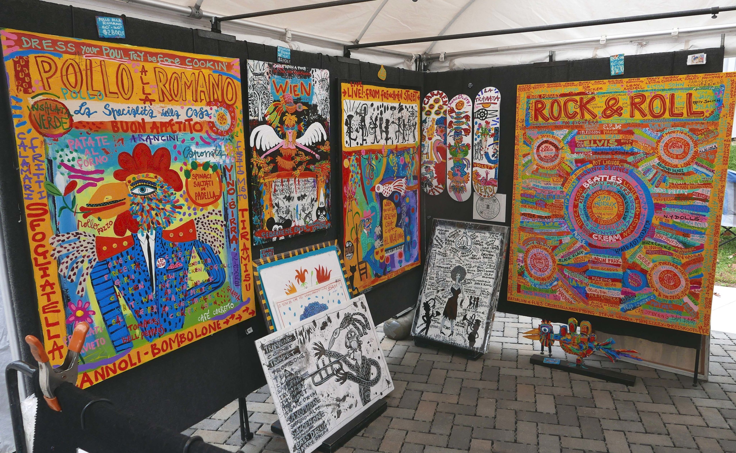 Annette Poitau, of Oberlin, Ohio, was back at the show for her first time in 10 years. She described her paintings as “all oil and very organic.” Despite the show’s slower start due to uncertain weather, when we spoke to her about a half hour after its opening, she reported already having sold a painting.