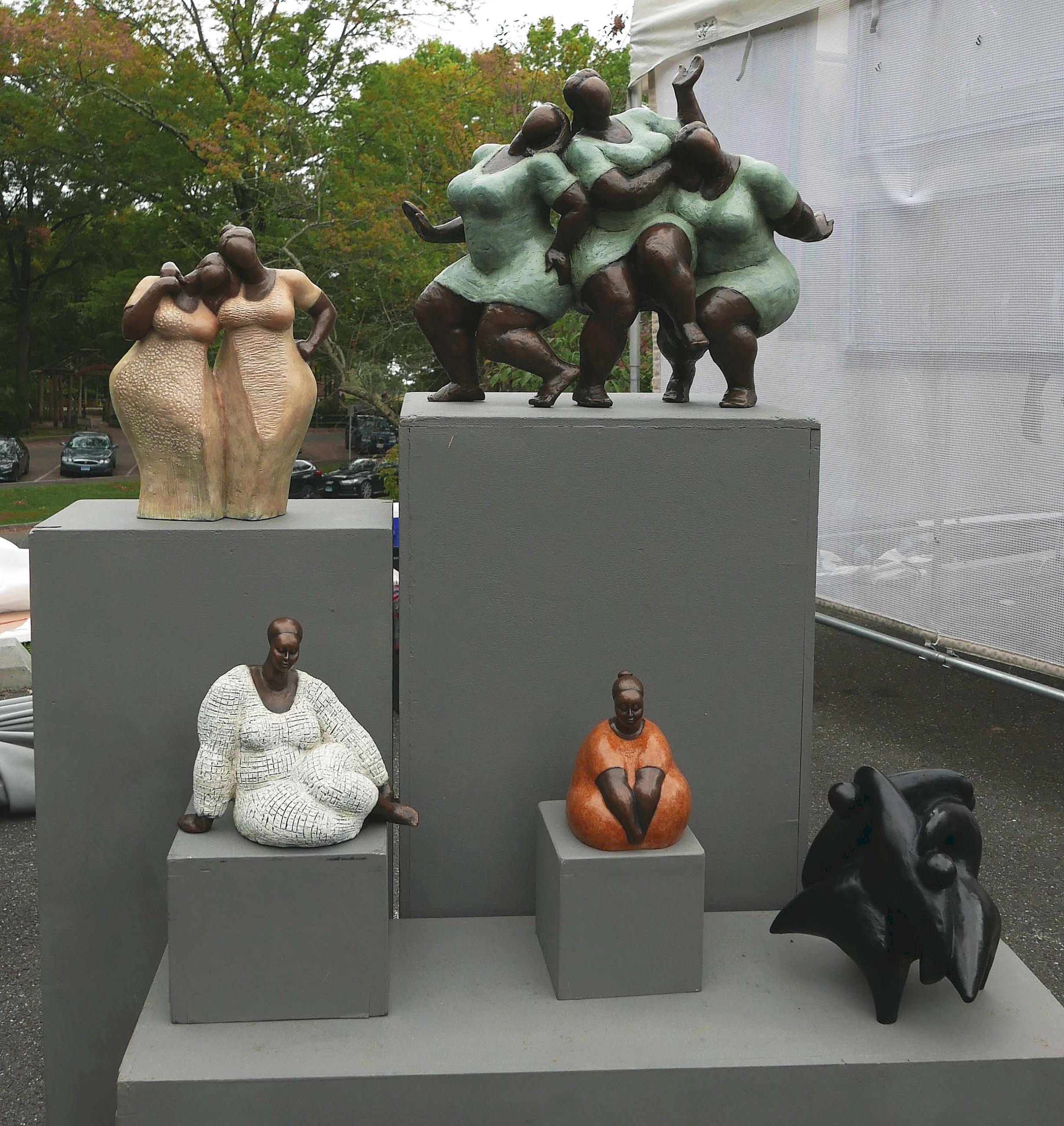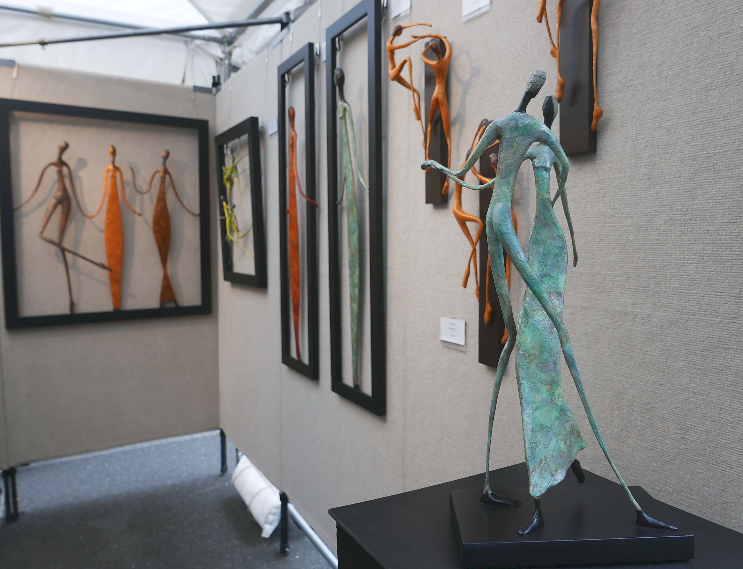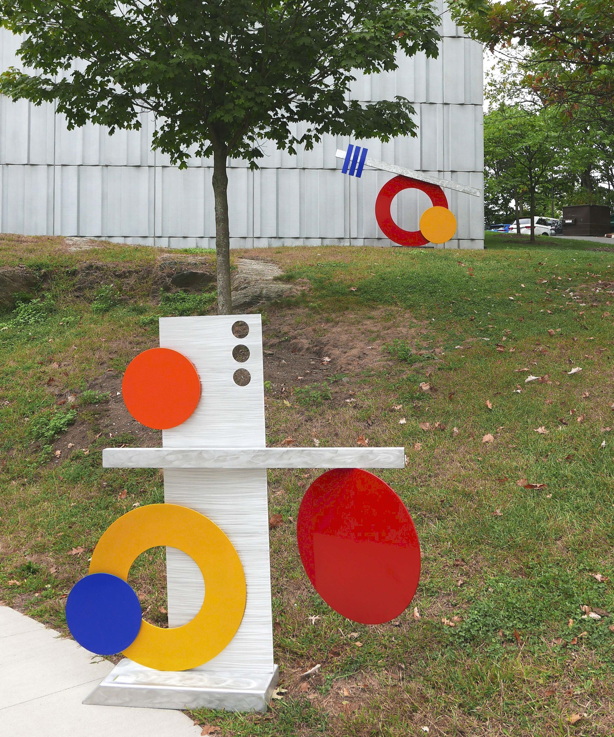 Most of Marshall Burns’ aluminum sculptures were shown inside his booth, though these two larger examples looked at home on the grounds of the Bruce Museum. Sheridan, N.Y.