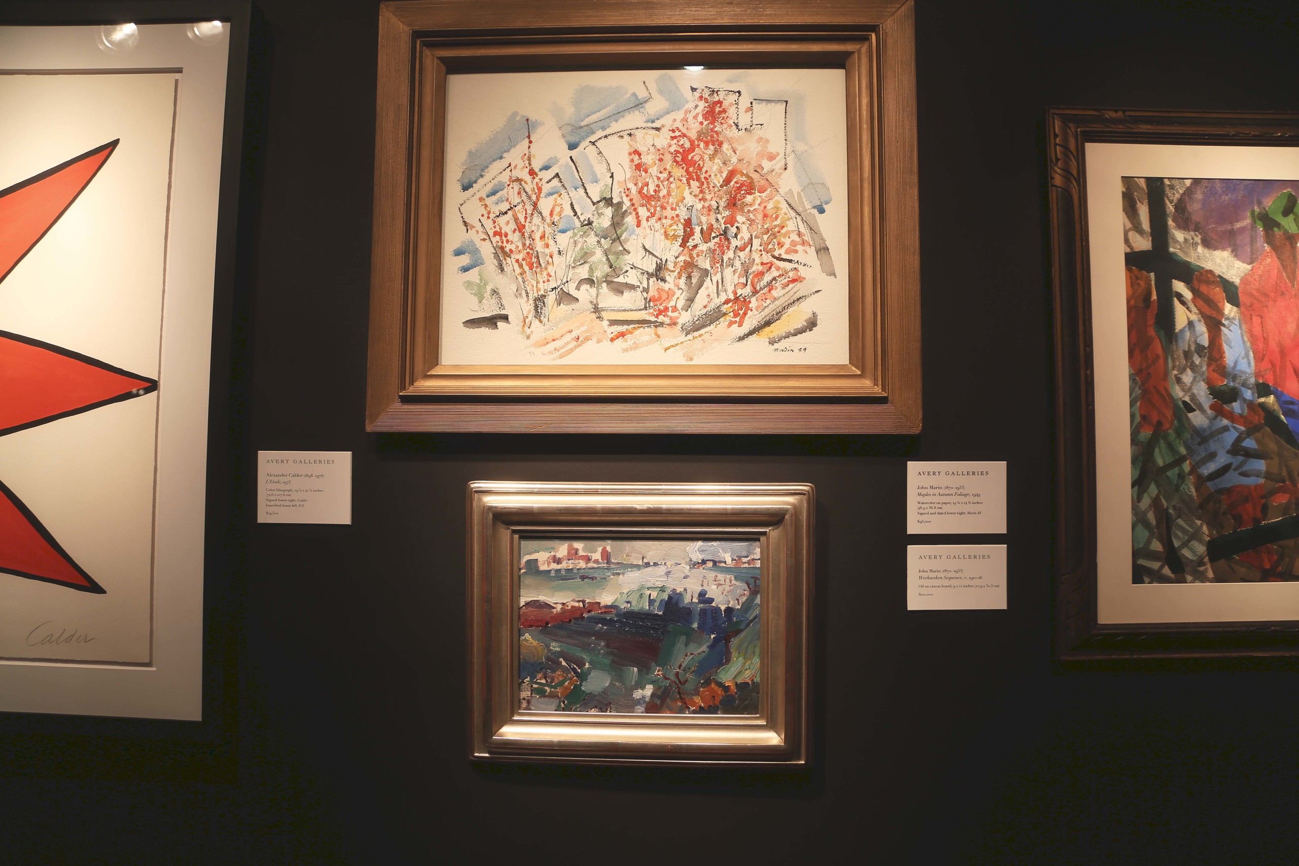 Krulik, occupying a front-and-center spot in the front hall, anchored her booth with Thomas Hart Benton’s four-panel suite titled “Elements of Sea and Sky,” but a piece she was particularly pleased with, that had not been shown in 30 years, was a Vermont landscape scene in a period Sanford White frame that was not original to the landscape.