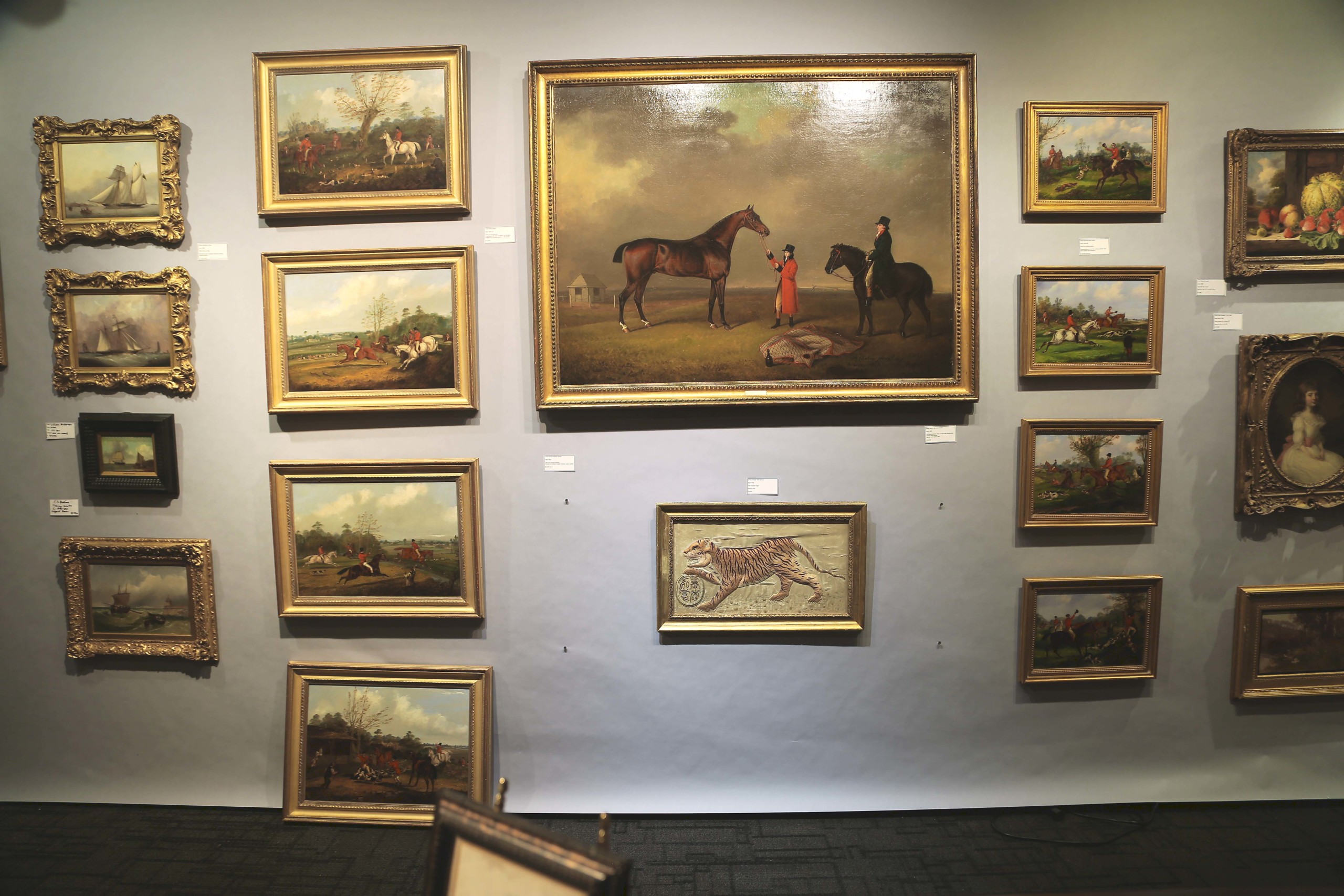 Winterthur has, until recently, been home to an annual Point-to-Point steeplechase horse race and the rolling hills of New Castle, Del., and Delaware and Chester Counties, Penn., are home to many horse farms. Like he has for a few years, David Brooker brought a broad selection of small sporting pictures of dogs and horses to meet this audience, and he made several sales, including a set of four circa 1850 fox hunting pictures by Edward Robert Smythe.