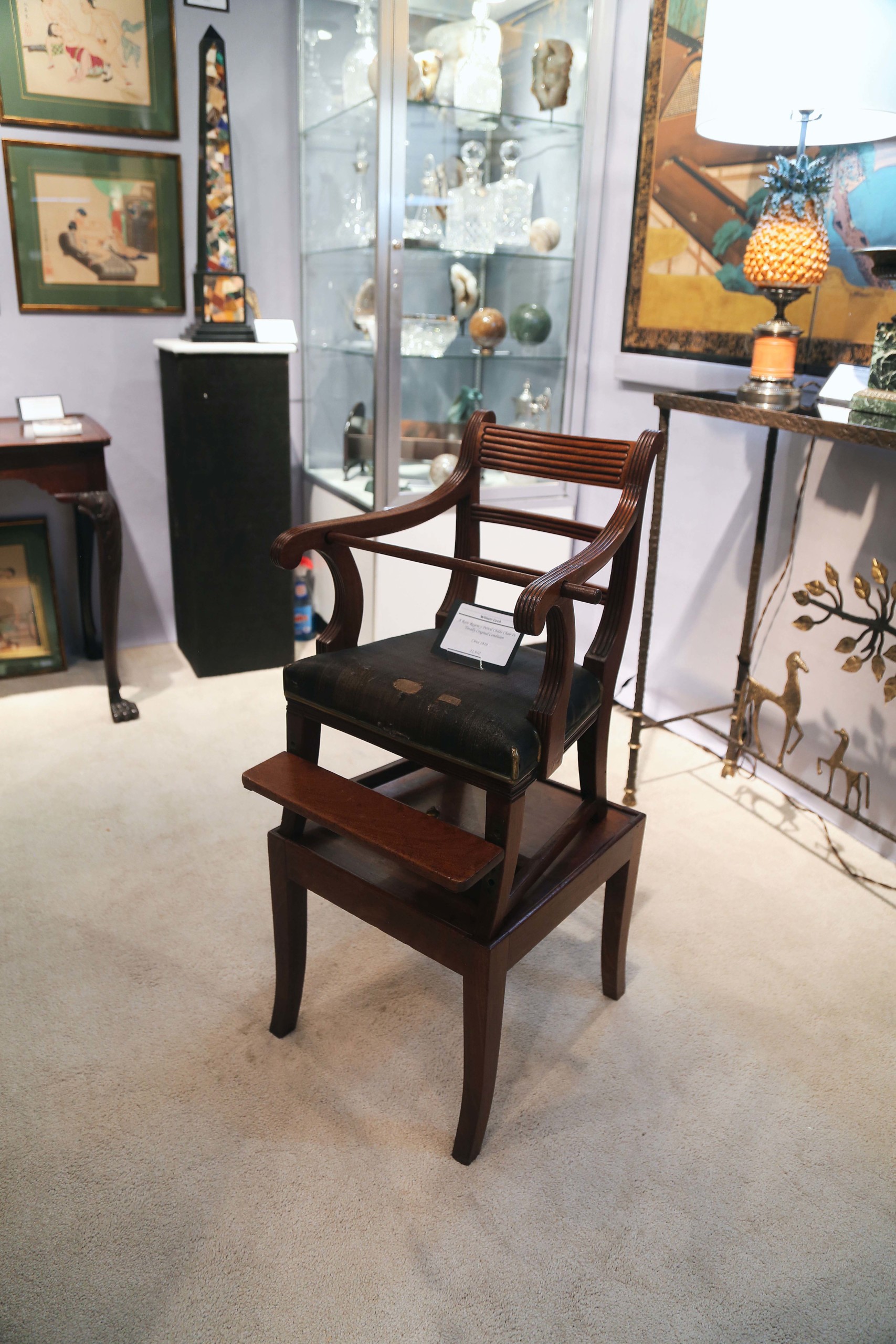 William Cook showcased a 1969 painted and upholstered red chair designed by Lord Snowden for Prince Charles’ 1969 investiture ceremony at Caernarfon Castle. It featured the distinctive Prince of Wales’ plume embossed in gilt on the back. He also had a pair of Nineteenth Century Edo screens and a “museum-quality” Regency child’s chair, circa 1810.