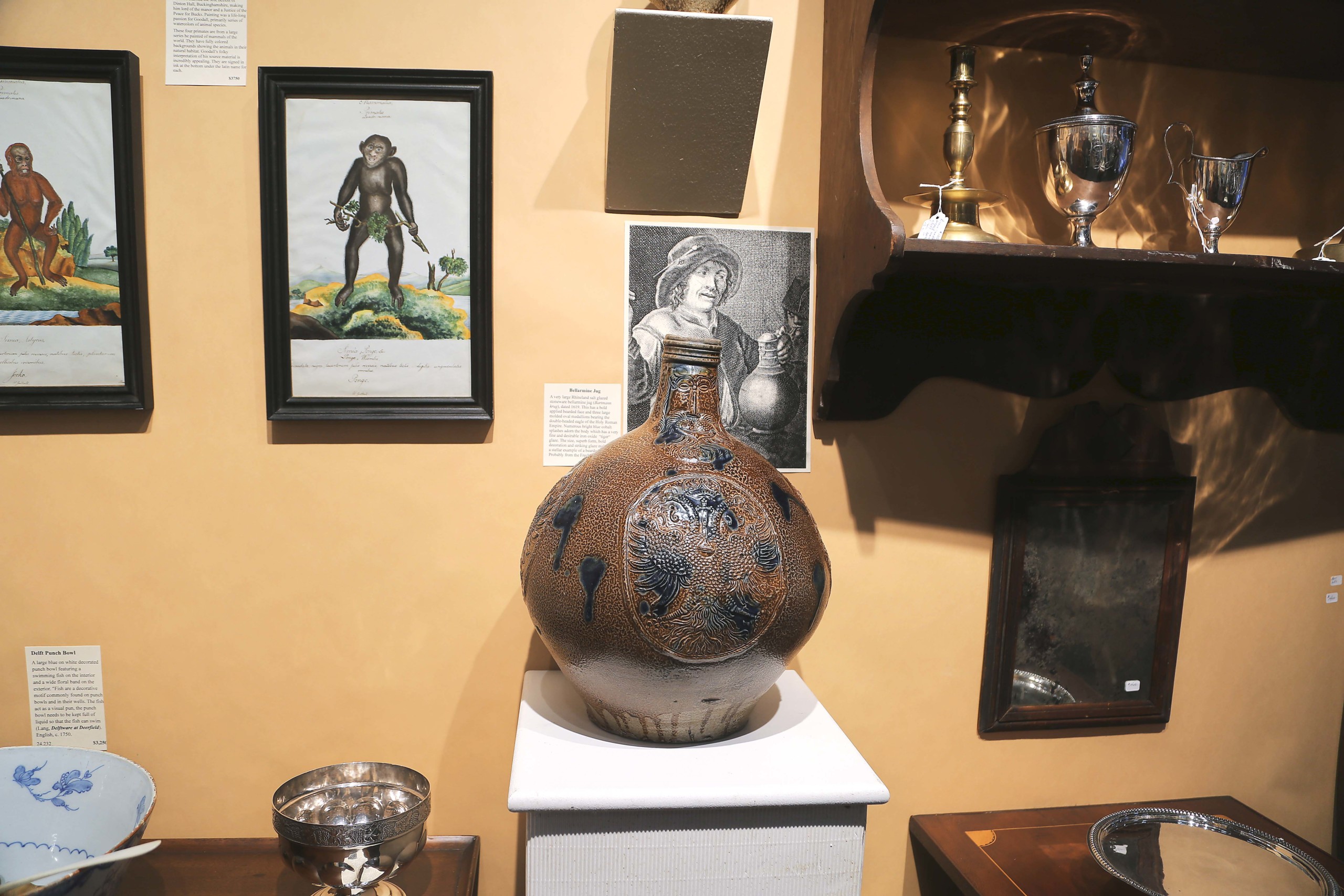 Mere feet away from Brodrick, Cullity said, “I got to see a lot of people I used to see; I saw more younger buyers there than at the shows I do up here [in New England]. Opening night was unusually good for me, with several sales. I was very pleased with that, and also with the reaction of my set-up with Hollis.” He sold a very small Bellarmine jug he said was very rare, several pieces of redware, a big watercolor of Napoleon’s farewell, a candlestand and “a lot of interesting smalls, including silver.”