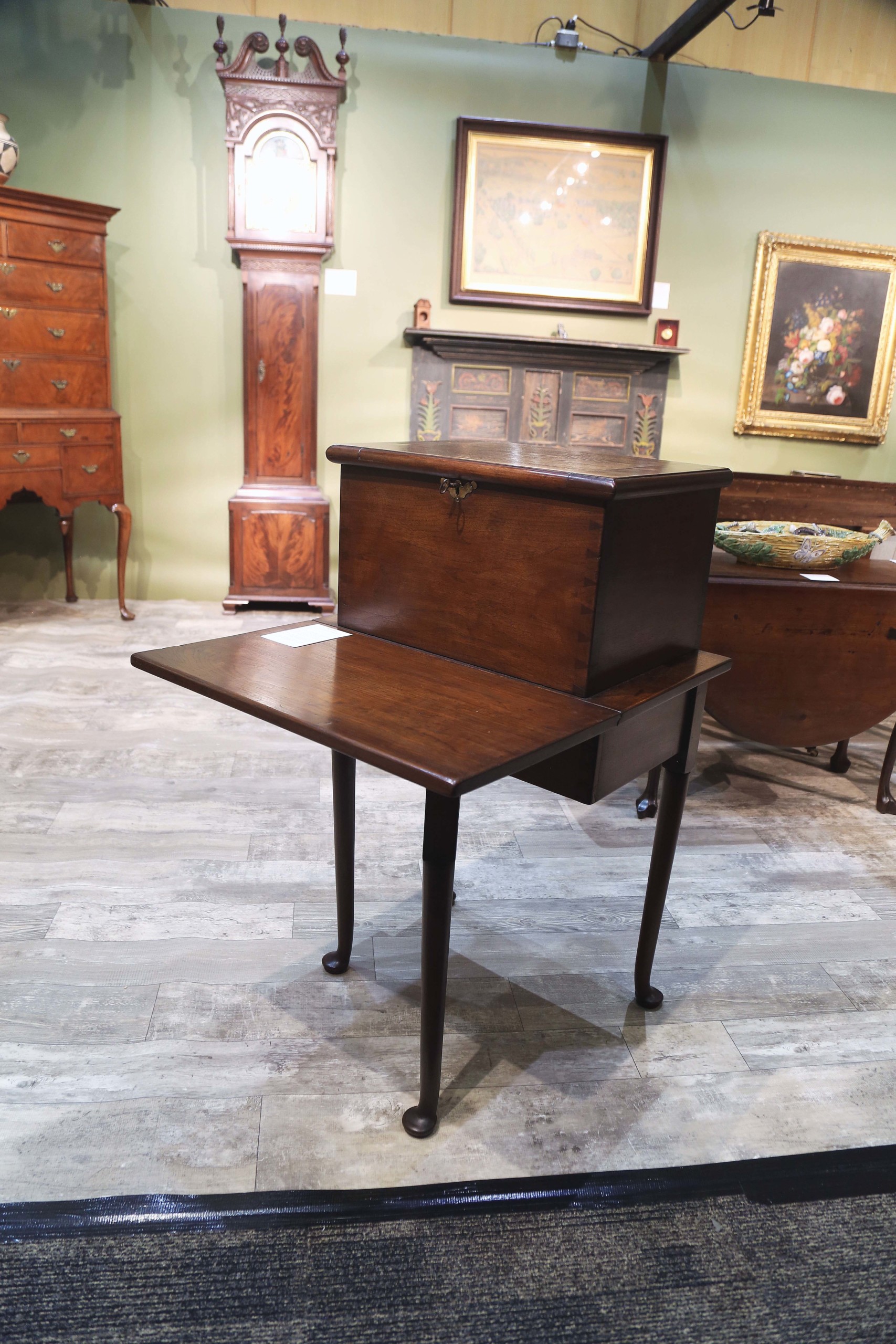 One of Arthur Liverant’s most important sales was a portrait of President John Quincy Adams holding the Declaration of Independence, which was painted while he was in office. While the painting was unsigned, Liverant said he thought was painted by John Brewster, Jr; it was acquired by a client the Liverants had known but who had not previously purchased from them. Other sales the Connecticut dealer transacted were a Federal server, a pair of wax portraits, a Pennsylvania walnut dressing table, a “really rare circa 1700-20 adjustable candlestand with ratchet mechanism — the first one we’ve ever had” and a William and Mary butterfly table, which sold to buyers younger than 50 years old who live in the Delaware area and were buying from Liverant for the first time.