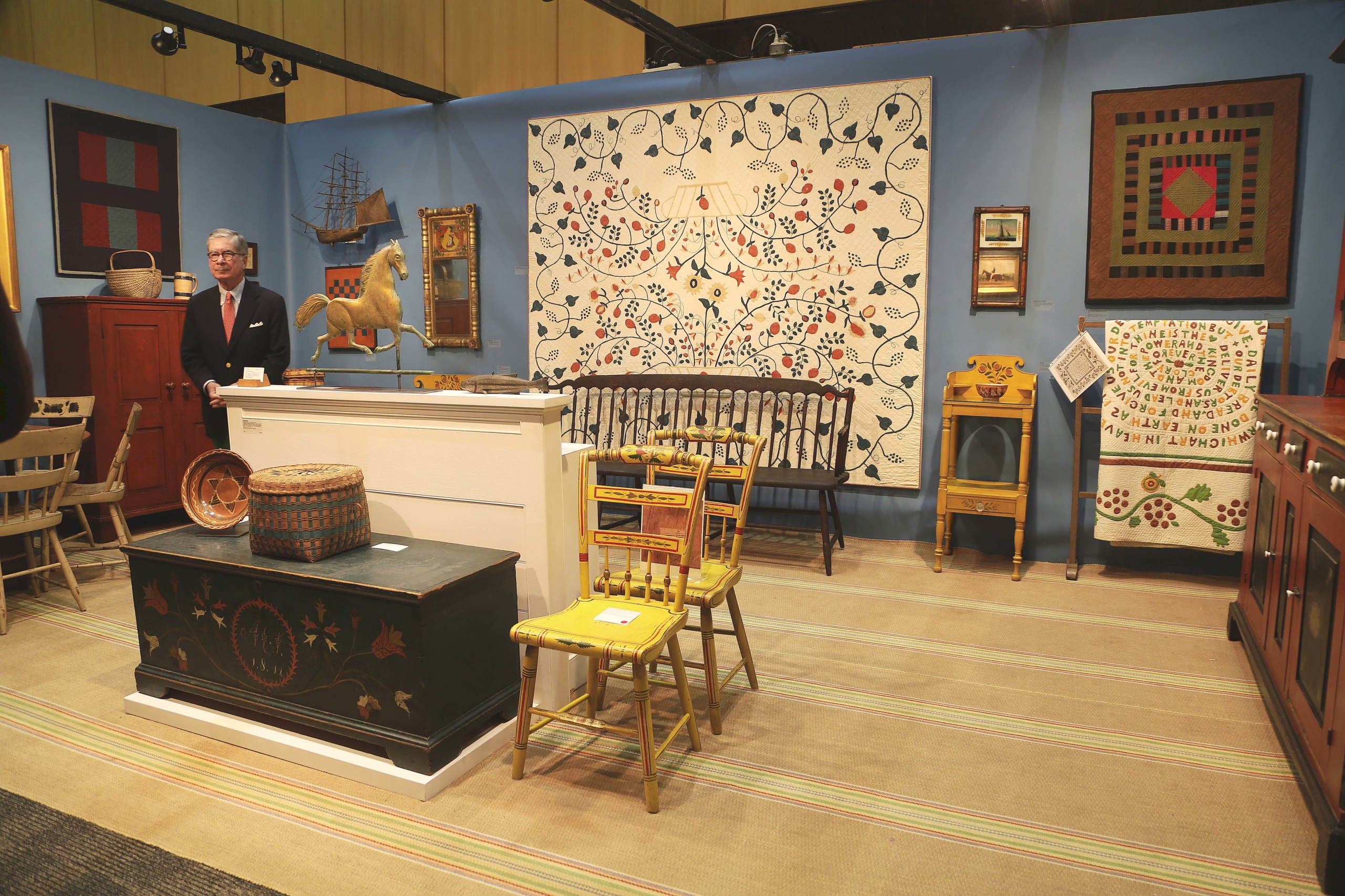 Olde Hope Antiques’ Ed Hild — speaking to us by phone after the show — said they were fielding lots of post-event interest. “We sold a wonderful Amish crib quilt and a host of small things, including a sale to the Philadelphia Art Museum of a pair of fancy yellow-painted chairs that were made in Philadelphia and had an original label under the seat. Several of our sales were to new connections, which is always a nice thing; in one case, it was a collector I’d known for years but who hadn’t bought from us previously. We had a very good interaction with the Fine Object Society: Ben Miller brought a group through the show and they were a very interactive, younger group that asked a lot of questions.”