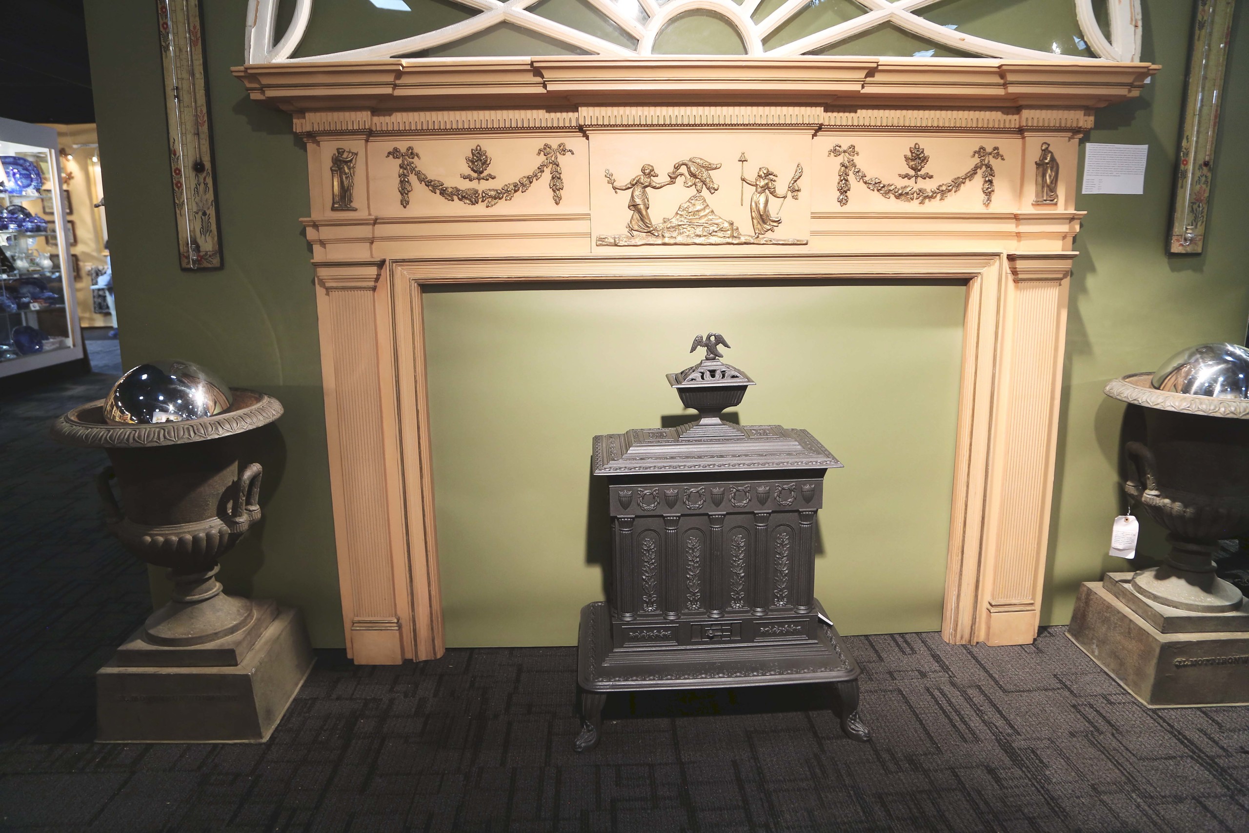 One of three models of a cast iron parlor stove made in Philadelphia, shown how it would have originally been situated, under a mantel. Francis J. Purcell, Philadelphia.