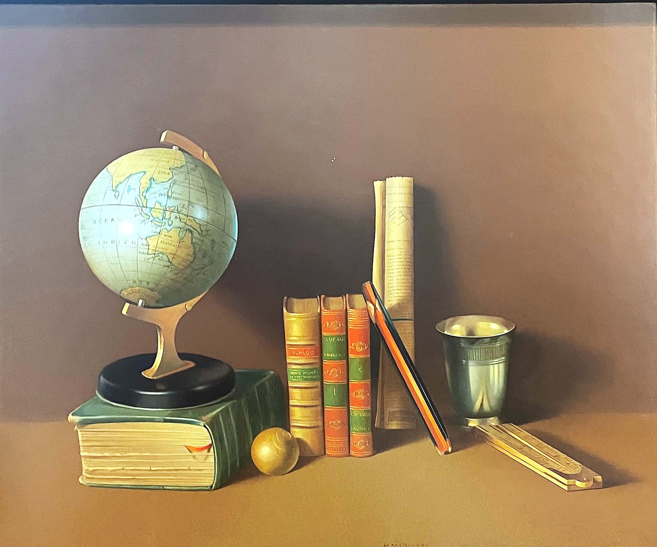 Richard Schillay, Schillay Fine Art, had a large selection of works by contemporary husband-and-wife artists, Antonio Matallana (b 1953) and Sabine Satur (b 1954). Schillay noted it is believed they would collaborate on a given work, though only one or the other would sign. The small compositions — none larger than 20 inches high or wide — combined the modern and historical in photorealistic still life paintings of everyday objects, rendered in egg tempera on wood, using techniques used by the Old Master artists.