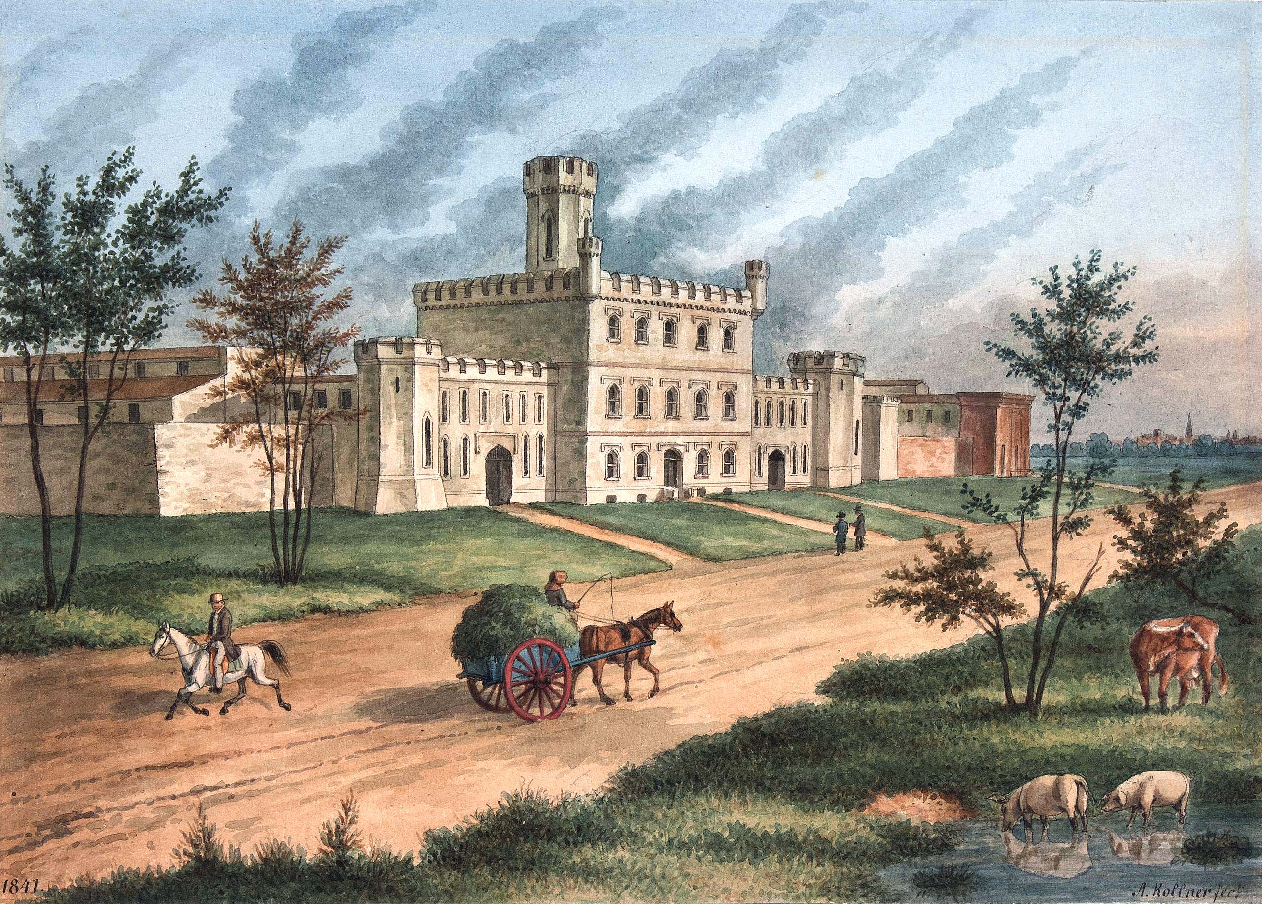 American fine art dealer Robert Schwarz was now in a new place, in the front hall. Situated between Gary Sergeant and Frank Levy, he had steady traffic. “Horse and Jockey at Belmont Driving Park, Lower Merion, PA” by Charles Spencer Humphreys and “Bird of Prey by the Shore” by Newbold Hough Trotter dominated one wall, while across the booth, a selection of 15 small works by George Washington Sully caught our eye. On opening night, he closed the deal on an 1841 watercolor of Moyamensing Prison by Augustus Köllner.