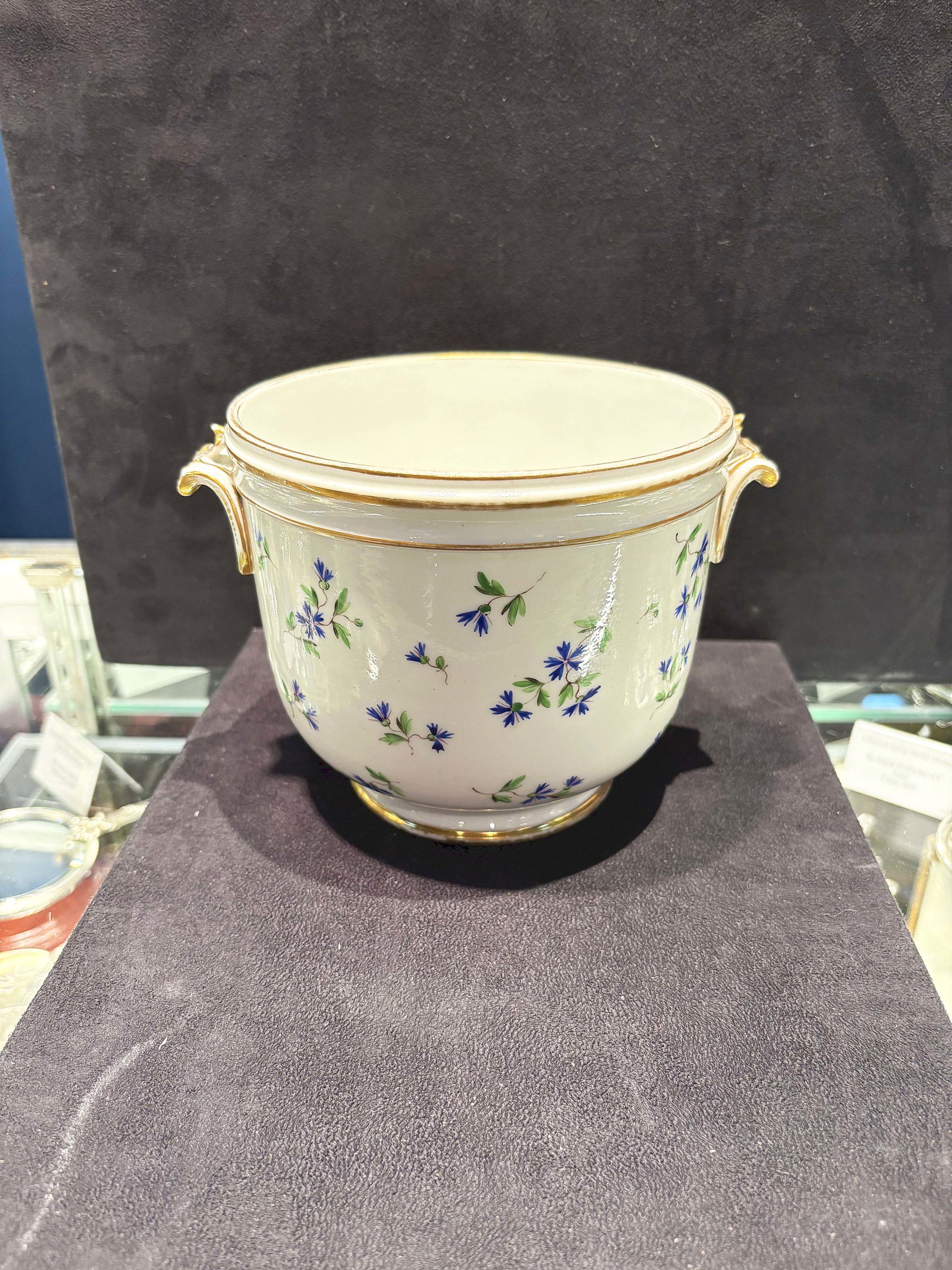 Jasmine Doussiere, Silver Art by D&R, always has a gorgeous booth gleaming with silver, gold and crystal. A beautiful breakfast table on loan from Rogert Winter was beautifully laid with a Saint Louis Cristallerie Thistle pattern gilt crystal stemware set for six, made in 1908, and a French vermeil 140-piece flatware service by Cardeilhac, in the Seashell pattern. Of particular note was a wine cooler that had been in Marie Antoinette’s possession at the Petit Trianon, made in 1778.