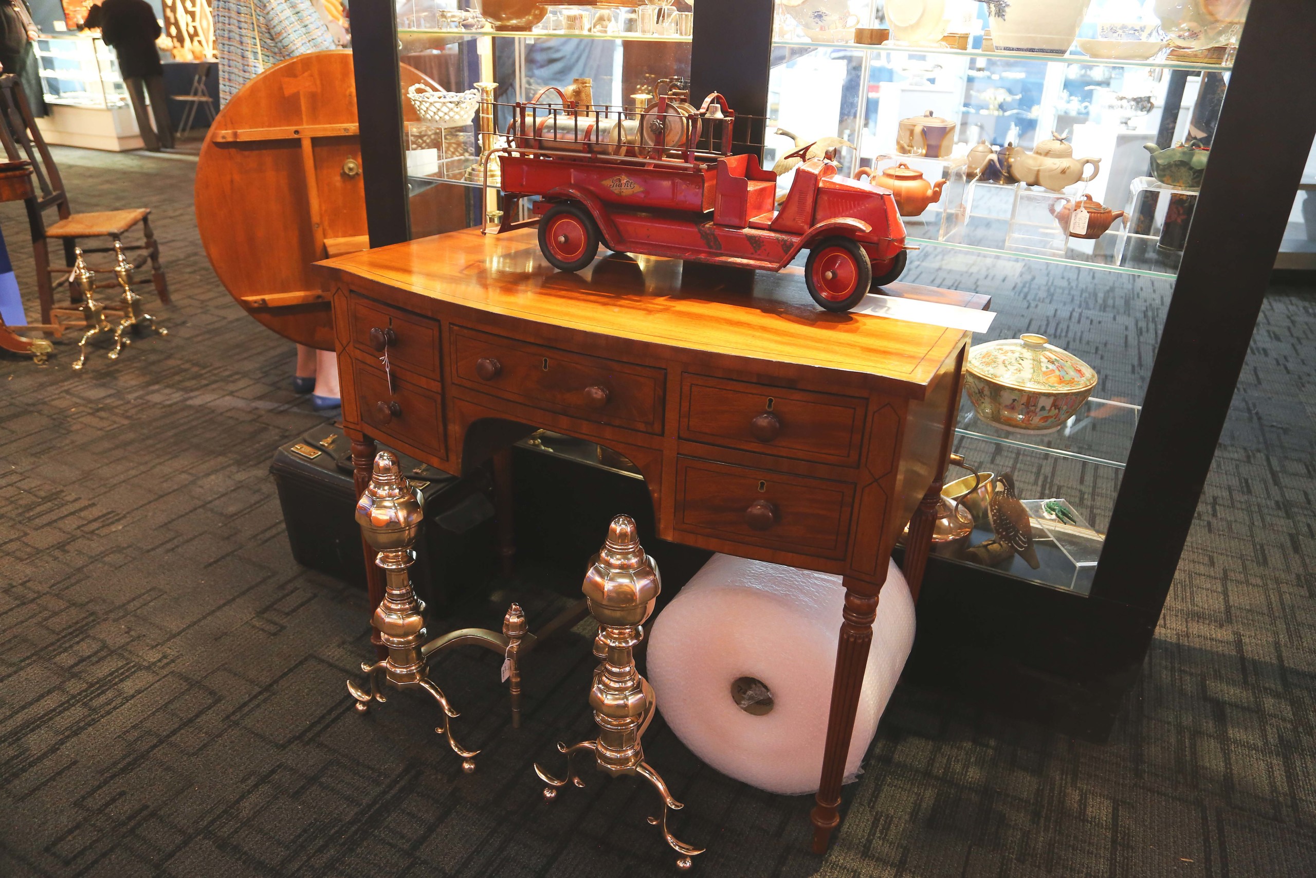 Daniel and Karen Olson had a flurry of sales to a new client on opening night that included a painted chair, a pair of candlesticks, a stoneware crock by White & Son and a Queen Anne turret-corner tavern table. “We were very happy and had more than 30 sales, and someone there looked at some photos of things we have back at the shop and they bought from those. We made sales to both new and repeat customers, from a broad range geographically: someone was from Texas, we had sales to buyers from Missouri, Connecticut and Ohio. Our best sale was a Queen Anne porringer-top tea table that went to someone local,” Karen reported.