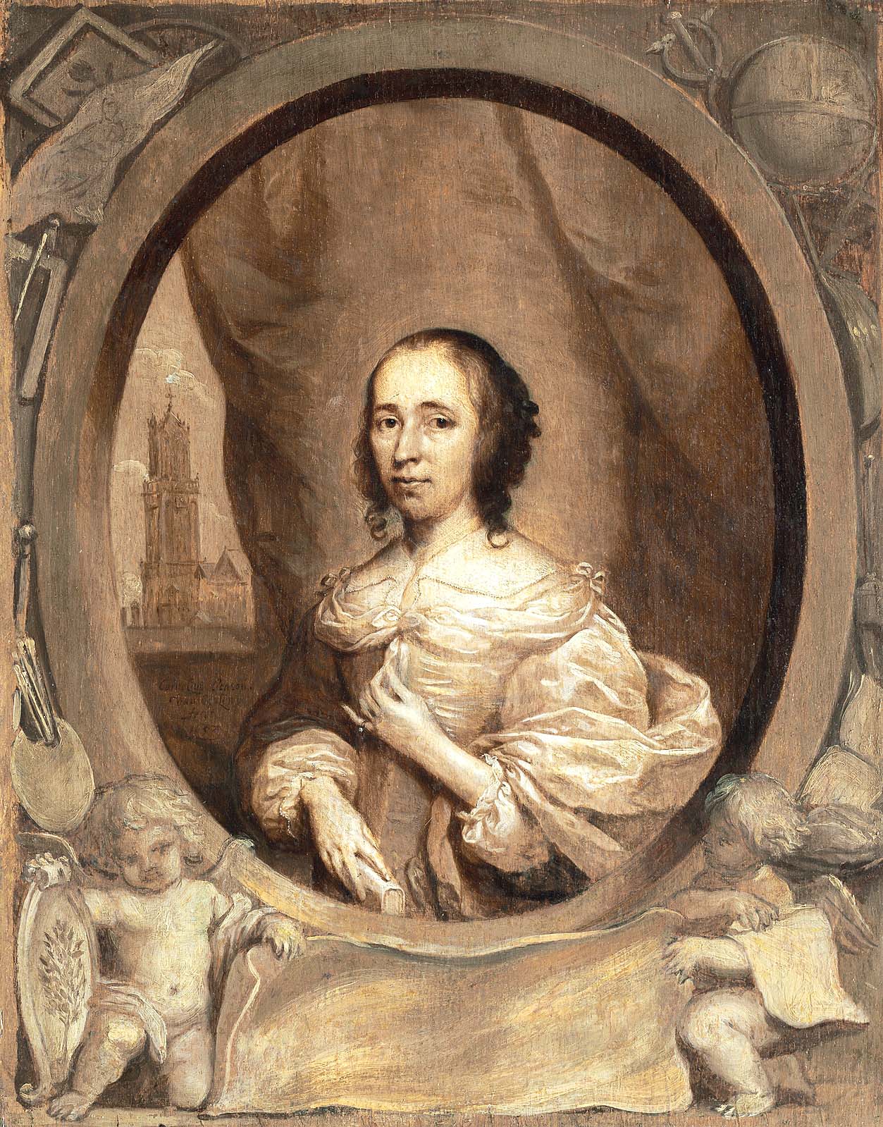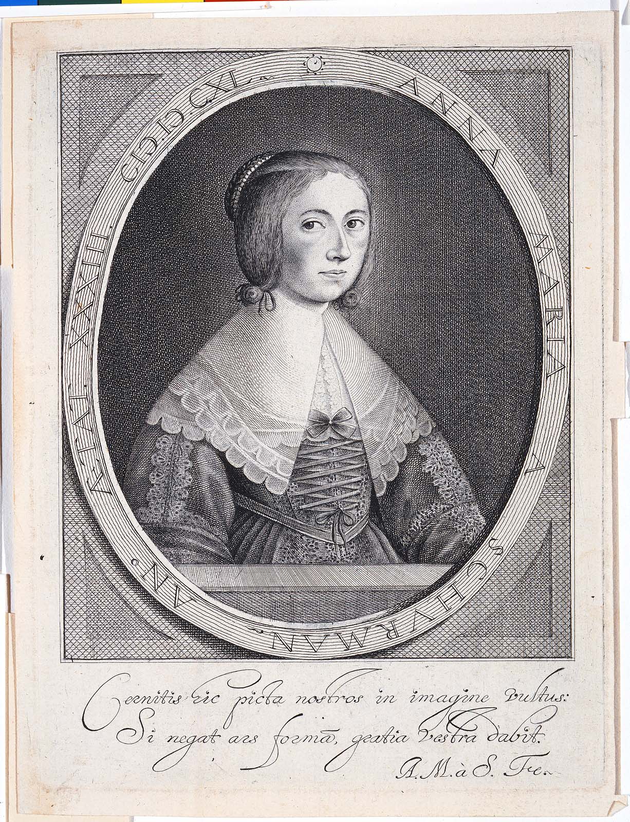 Self-portrait of Anna Maria van Schurman, 1640, engraving on paper. National Museum of Women in the Arts.